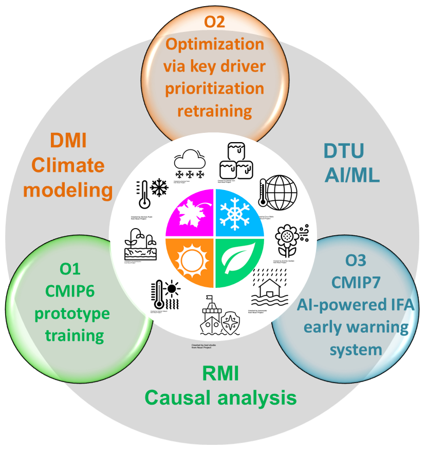 The diagram below displays the main expertise of each partner contributing to the project as well as the 3 key objectives of IcyAlert (O1-O3):